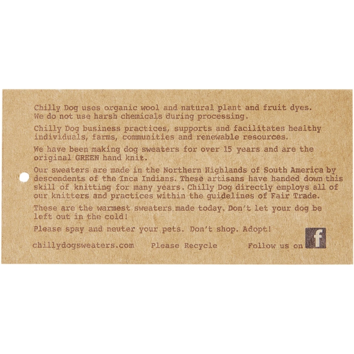 Remember to measure your pet for the paw-fect fit. Staying warm and wag-tastically fashionable is always in season with the Chilly Dog Boyfriend Dog & Cat Sweater. This sweater is hand-knit with the love and expertise of artisan knitters from the highlands of South America, to fit your dog or cat perfectly and keep him warm and snuggable. Because it’s made of 100% natural, renewable and non-allergenic organic wool, it helps insulate your precious pet from chilly weather while still being ultra-breathable, comfortable, and allergy-free. Thanks to its debonair style and shawl collar, your furry friend is sure to look smart and dapper wherever you go—whether it’s a night out on the town, get-together with friends, or just a stroll around the block. Plus, thanks to its eco-friendly design that uses only plant-sourced, natural dyes and wool Fair Trade sourced from small Andean farms, there is nothing artificial between you and your cuddle-happy pal.
