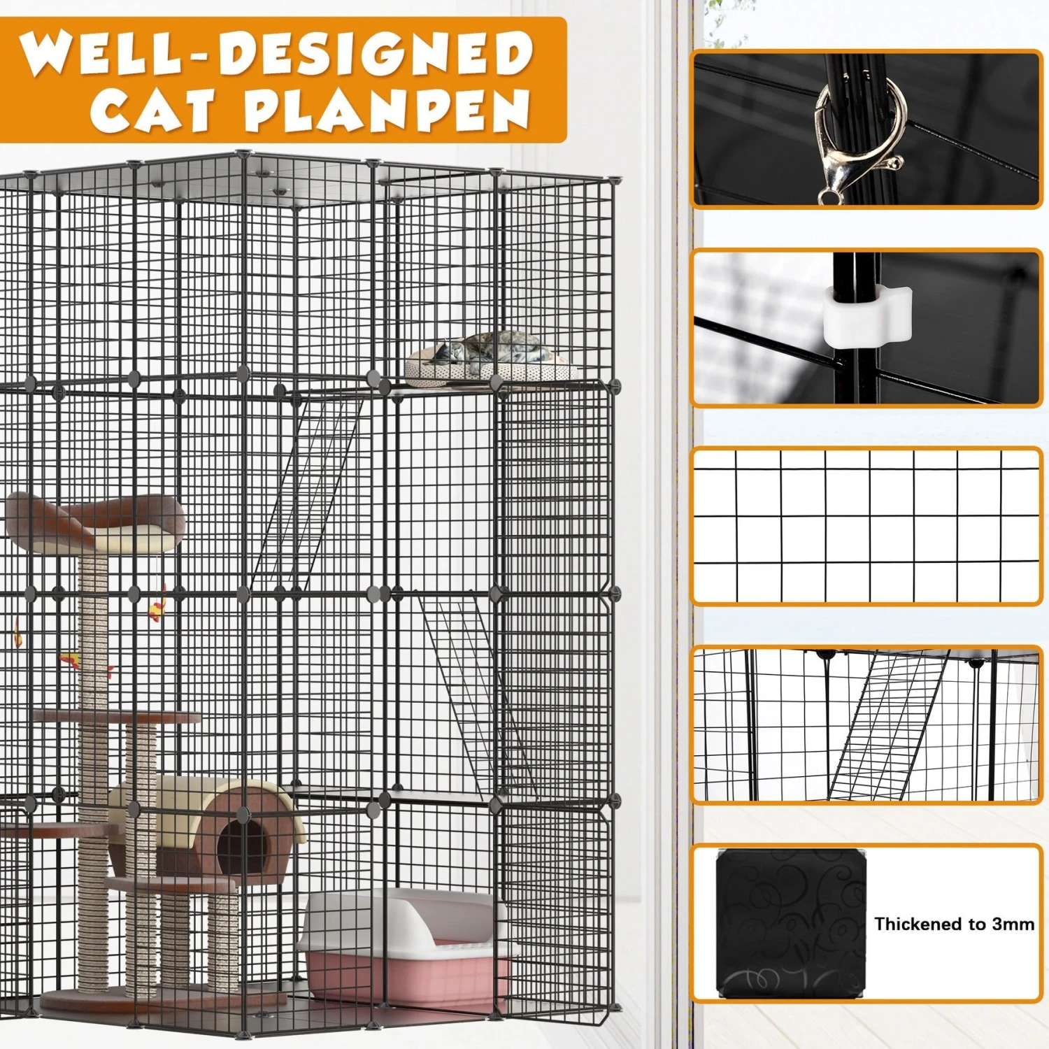 Give your kitty the cozy cage of their dreams with the 3-Tier 4-Door Cat Cage Playpen from Coziwow! This spacious home base boasts a lavish interior that can fit several cats and numerous pet supplies. It includes 3 resting platforms with ladders, which help relax your kitty and satisfy their natural climbing instincts. This cat cage is also designed with four doors for easy access alongside U-shaped fasteners to fix it to the wall. It even includes a full-sized resin sheet base and roof with durable wire mesh, which can stand up to repeated play.