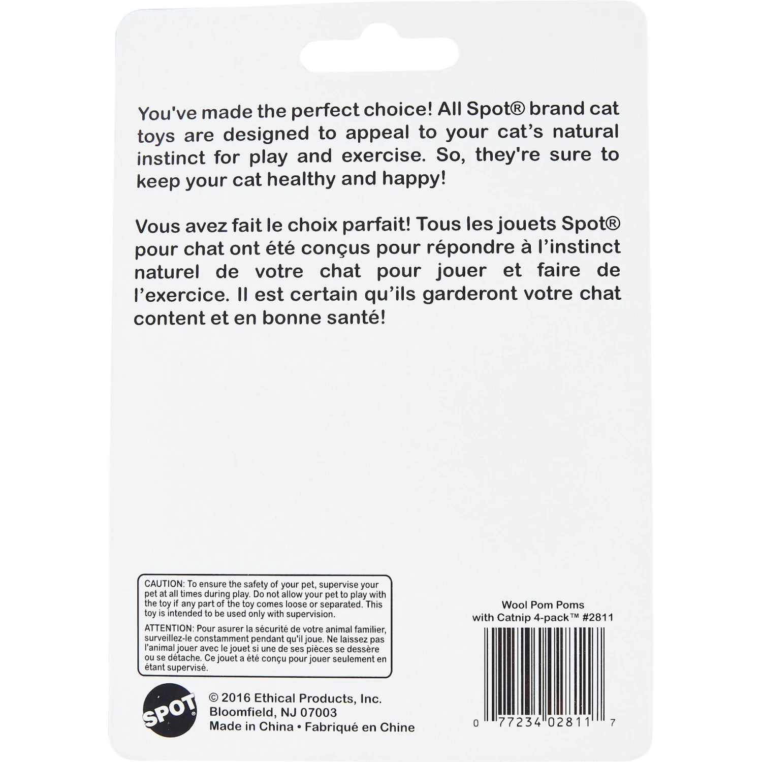 Drive your cat wild during playtime with Ethical Pet Wool Pom Poms Cat Toy with Catnip! This classic cat toy is filled with 100% catnip for endless amounts of fun. The vibrant colors help capture your kitty’s attention, while the high quality wool stands up to hours of play. Good exercise is cuter than ever with Ethical Pet!