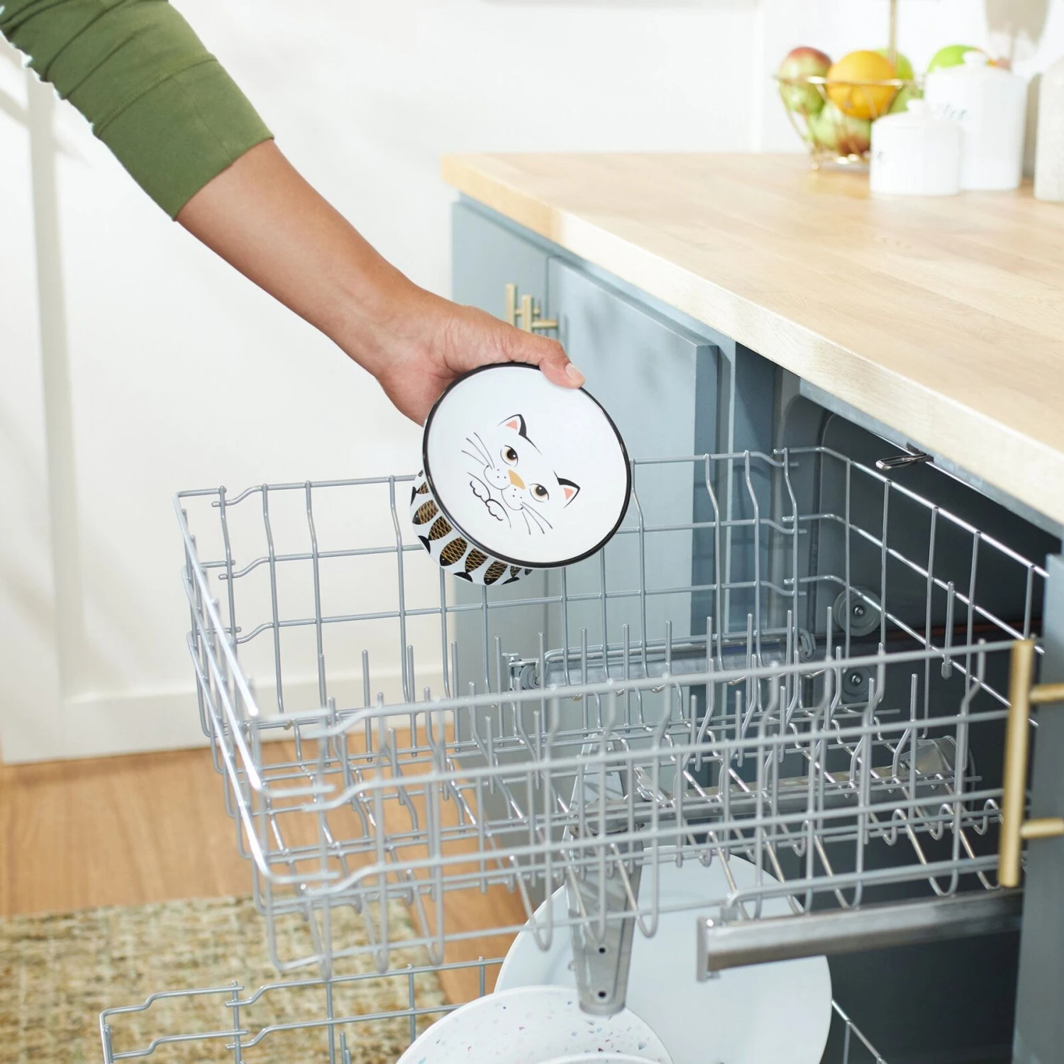 Who’s that looking at your feline friend while they eat? It’s their new favorite cat bowl, that looks just like them! This house isn’t big enough for two cats, unless that cat is a Frisco ceramic bowl that’s just perfect for servin’ up their favorite meals. Made of ceramic, with an elegant art design of a cat, this dish looks great and will hold up after many meals. The non-skid bottom helps to ensure that there’s no spillage while your cat goes to town on their food, and the elevated design helps to prevent neck strain. It can also hold up to 1 cup of delicious food or water for kitty. Elegant design, from the pet experts at Chewy.