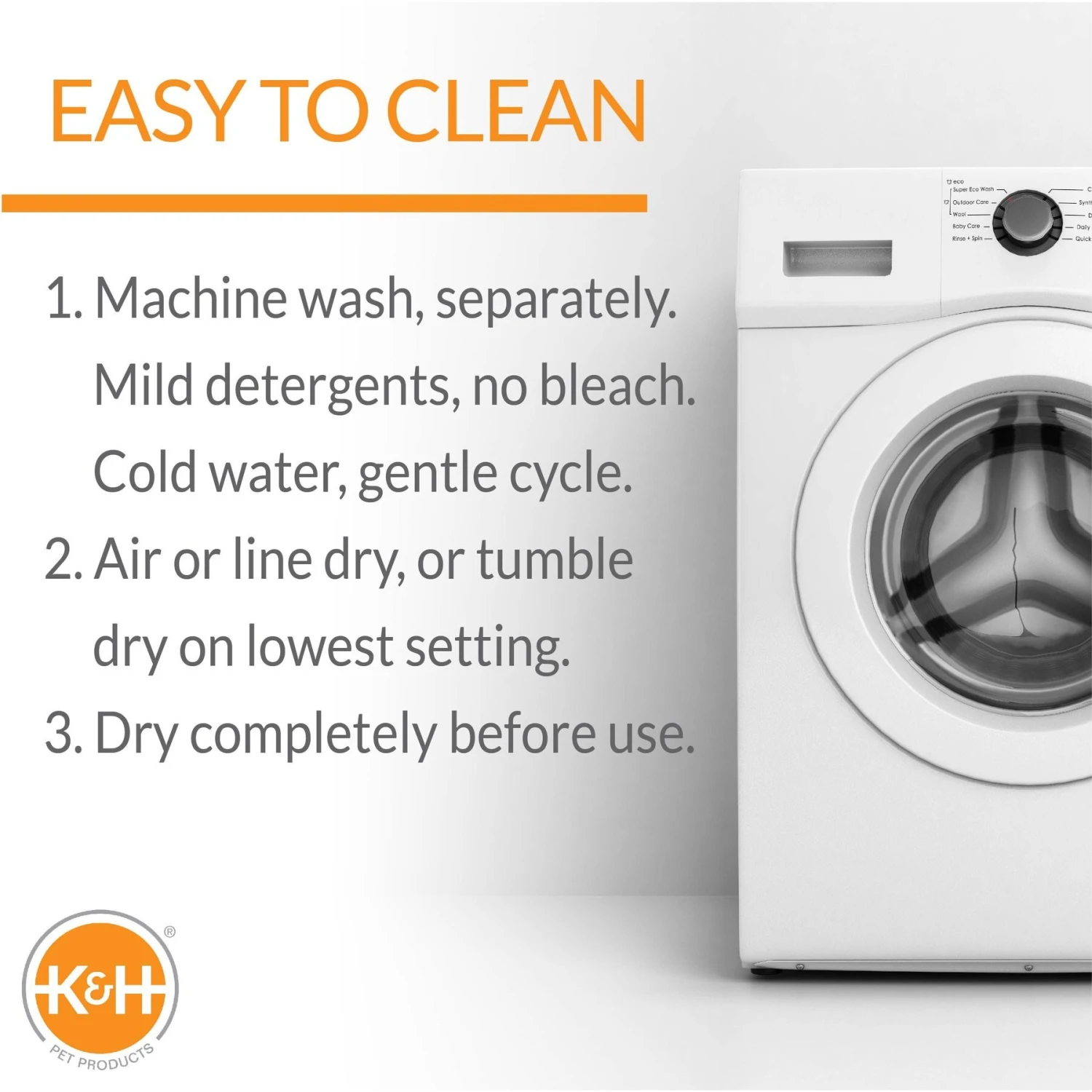 Place the entire bed in the washing machine and wash on the gentle cycle with cold water. Line dry or use the no-heat cycle on your dryer.