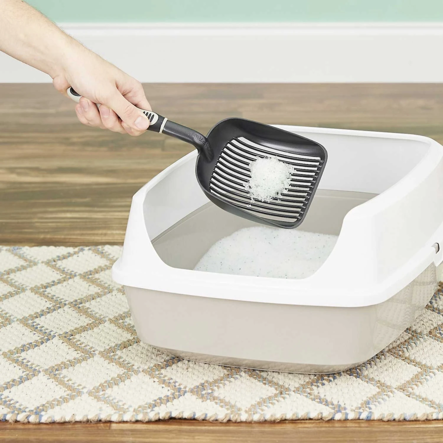 Give your furry friend easy access to her bathroom with the KittyGoHere Senior Cat Litter Box and top it off with Dr. Elsey’s Precious Cat Unscented Non-Clumping Crystal Cat Litter. Ideal for young, old or mobility-challenged paw-tners, this box features a 3-inch high entry point so your kitty can step right in without having to jump. It helps alleviate the pain that comes from arthritis and is more convenient than a high-entry box. The litter absorbs urine and odor on contact and traps it inside the crystals, keeping a cat’s genital area clean to help prevent urinary tract infections. Its small particle size and fine dust also coat and dehydrate cat feces to reduce odor.