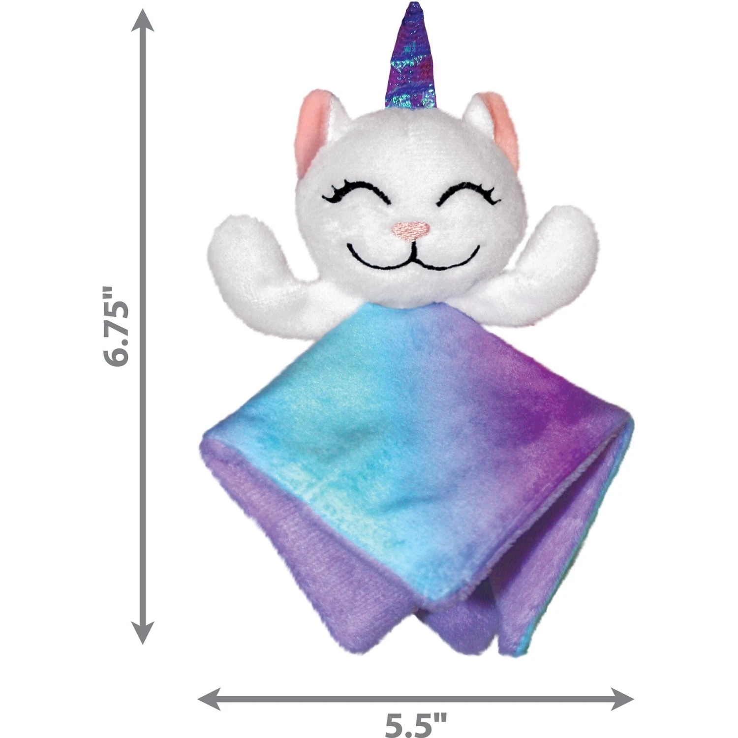 The KONG Crackles Caticorn Cat Toy only looks like it’s sleeping! But, it’s actually enticing your curious kitty to play and snuggle with her new magical friend. Crackle sounds awaken the wild cat in your frisky feline, encouraging tousling and tumbling play. The soft plush body is purr-fect for kicking and pouncing, and the flexible folds are ideal for play and for a good snuggle once your kitty is tuckered out. Premium catnip also encourages longer play sessions and happy snuggles.