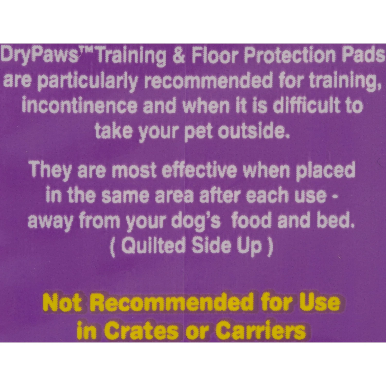Place quilted side up in the same area after each use – away from your dog’s food and bed. Not recommended for use in crates or carriers.