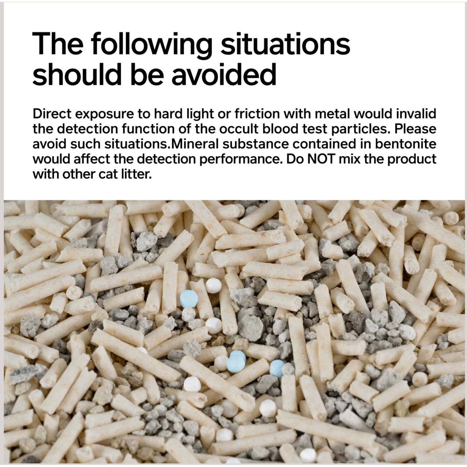 (1) Minor air leaks of vacuum package during transport won’t impact usage(2) When disposing of used cat litter via the toilet, use the appropriate jurisprudence so as to avoid clogging. (3) To ensure disposable clumps remain in balanced proportions to average drain sizes, Pidan advises that cat litter be spread to a thickness of approximately 2 inches in the litter box.(4) In effort to ensure a beneficial and healthy lavatory experience for your cats, Pidan recommends changing cat litter daily.(5) Customers may notice a variance in color between packaged litter batches. Please note that this is perfectly normal as all of our materials are natural and do not follow generic artificial production procedures that might cause consistent color.