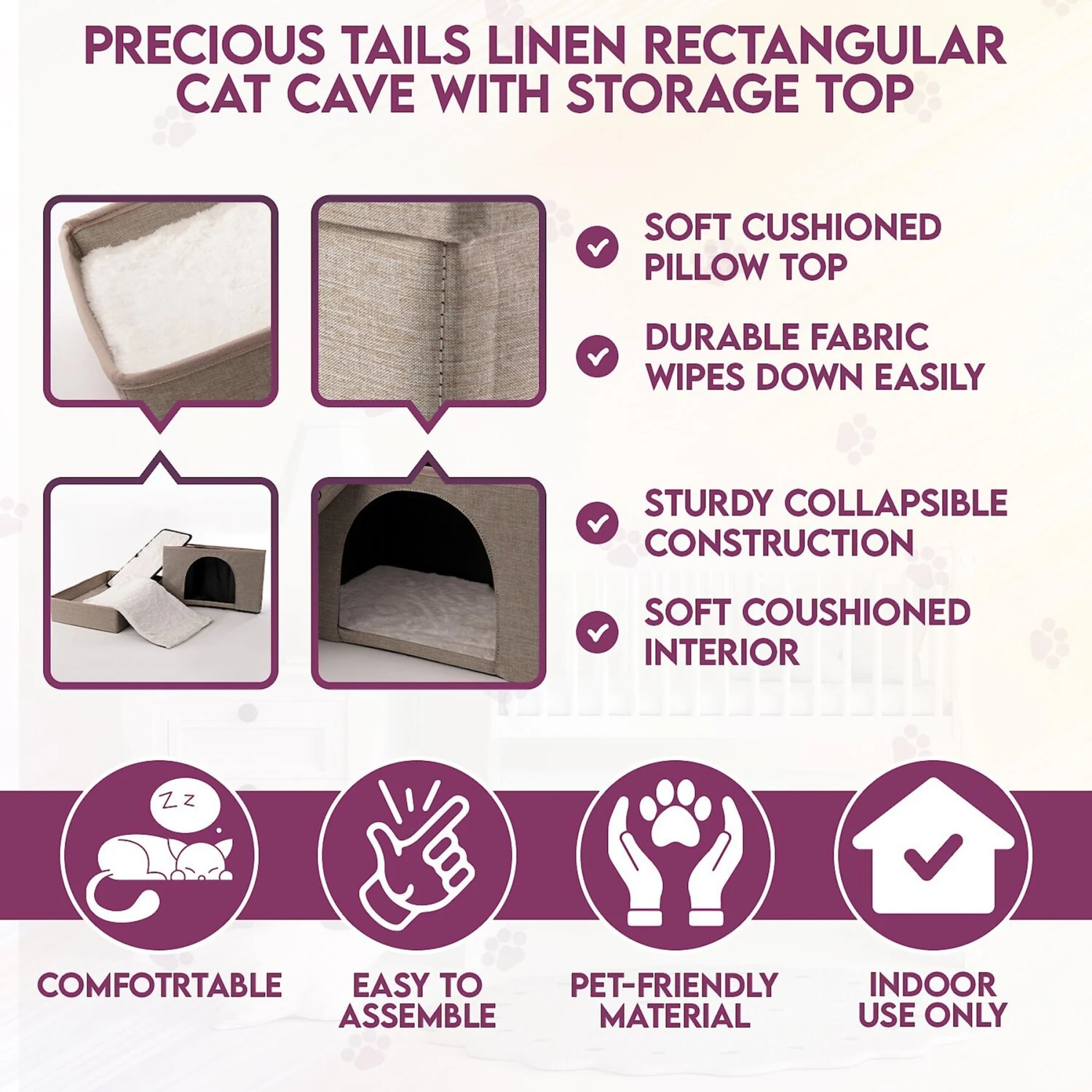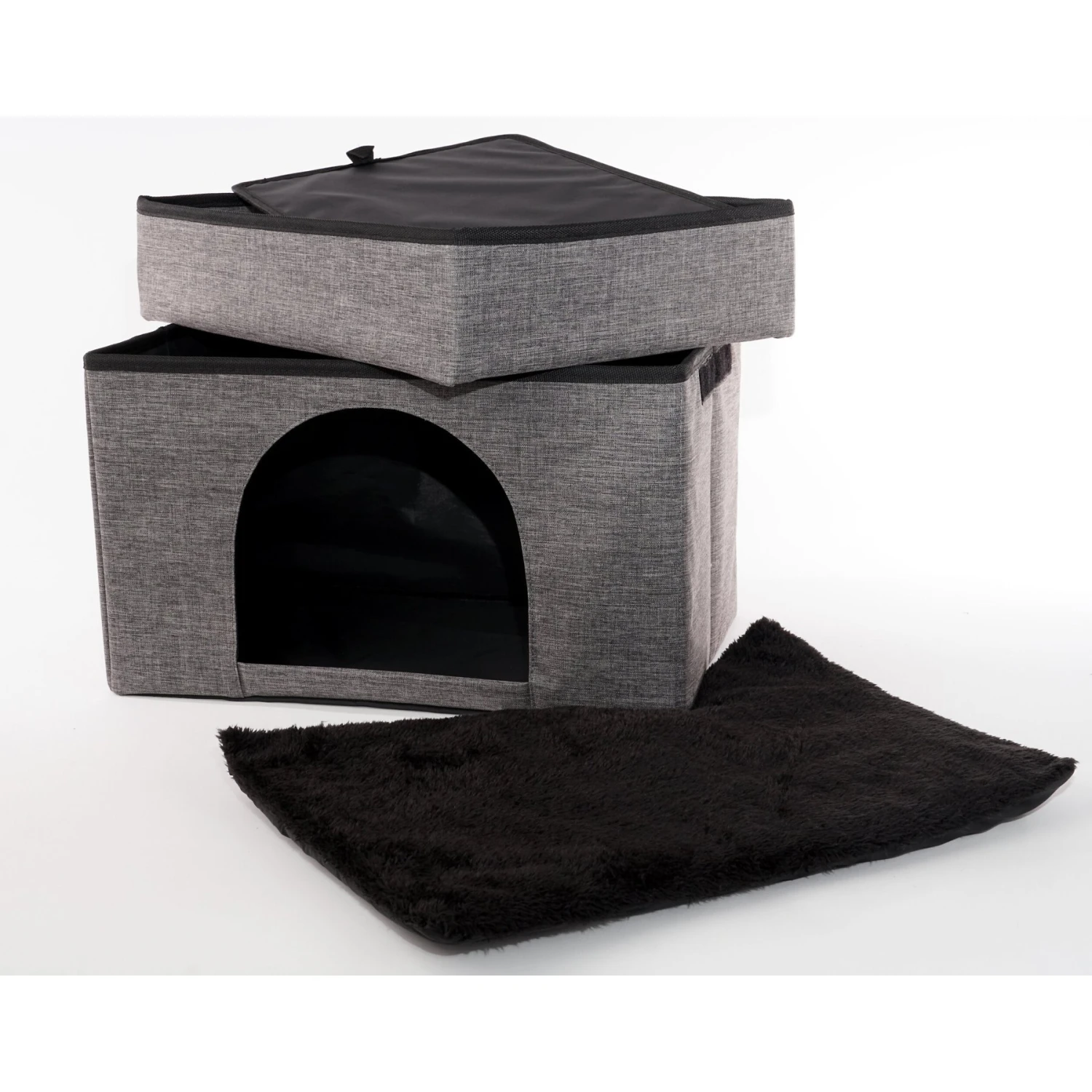 Give your favorite feline the purr-fect place to rest after a long day with the Precious Tails Home Base Rectangular 2-Tier Collapsible Cat Cave! This cozy bed is made from sturdy, yet collapsible materials that are easy to assemble. It also features a soft, cushioned pillow top. It’s made from durable fabric that wipes down easily, which is an added perk for pet paw-rents!